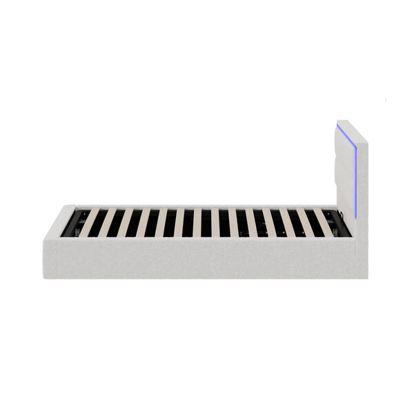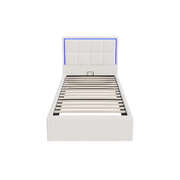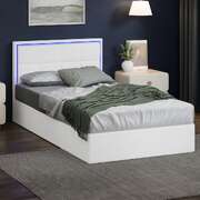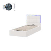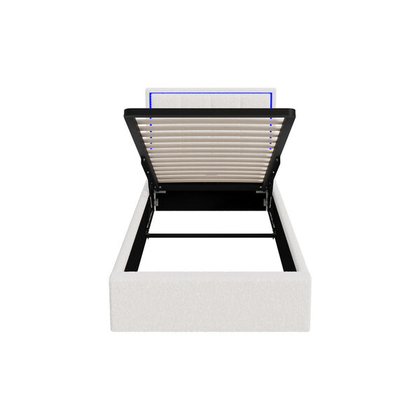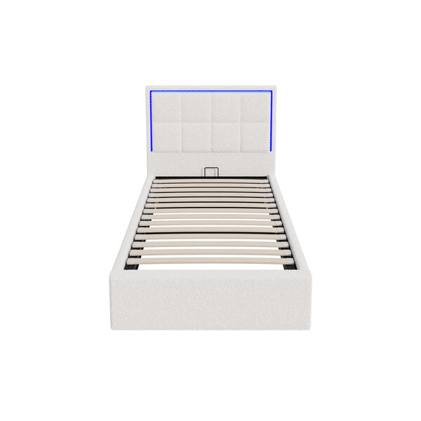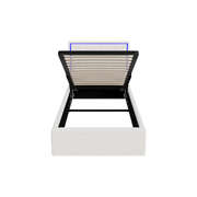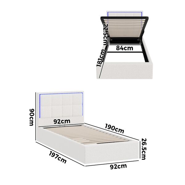 Bed Frame Single Size RGB LED Gas Lift Storage Base White Boucle