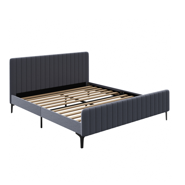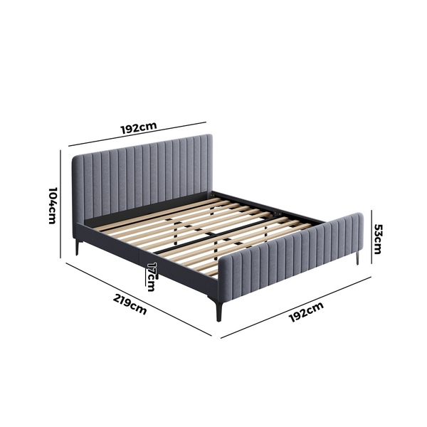 Bed Frame King Size Beds Platform Velvet Fabric Grey