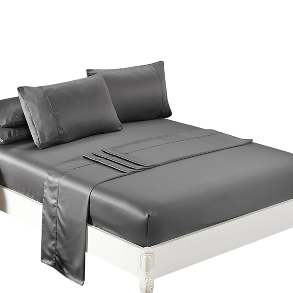 Silky Satin Sheets Fitted King Grey Dark Grey