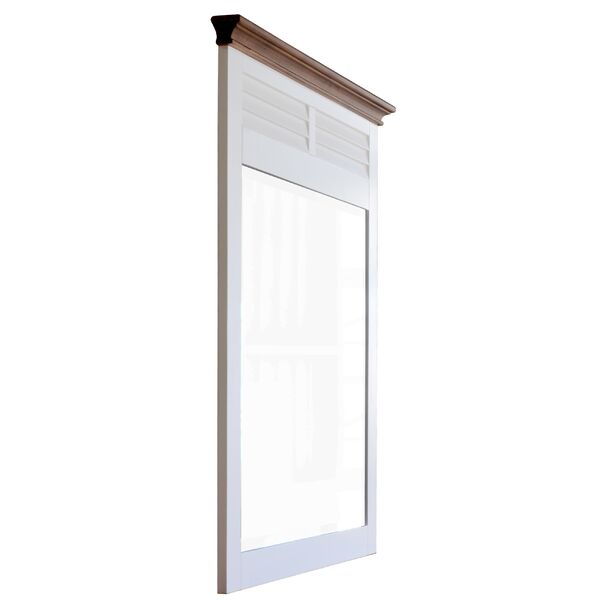 This beautiful mirror fills up the bedroom with positive vibes. Designed in the Hampton style, the mirror flaunts a two-tone colour palettea brown rustic top and a white painted baseand louvre detailing, which makes it look even more attractive. It is made of resilient, annealed glass and fitted into an equally beautiful wooden frame. The wooden part is made of solid pine wood, harvested in a sustainable way. The wood is known for its beauty, resilience, and shock resistance, so the mirror is durable as well. The fully assembled mirror comes with a 1-year warranty.