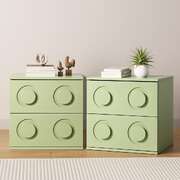 Bedside Table 2 Drawer Nightstand Side Cabinet Green 2 Pack