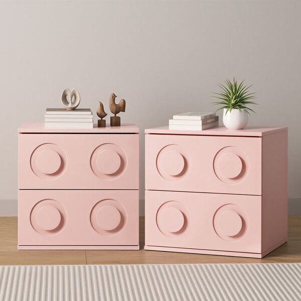 Bedside Table 2 Drawer Nightstand Side Cabinet Pink 2 Pack
