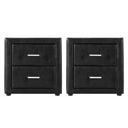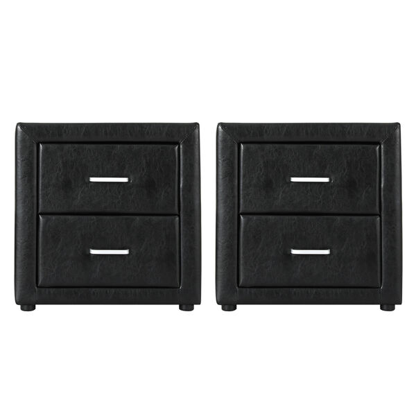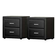 Bedside Table 2 Drawer Side Table Leather Black 2 Pack