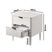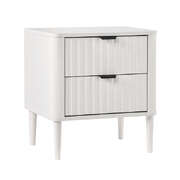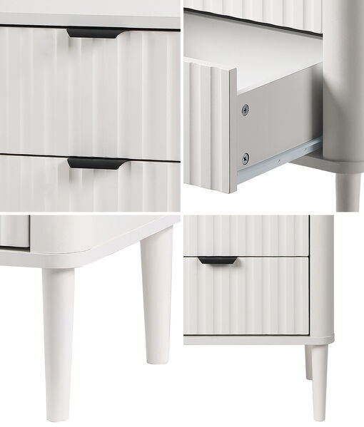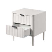 Functional. Convenient. Tidy. Organised. The humble bedside table is undoubtedly one of life's better creations. And our Bedside Table definitely ticks all the right boxes to enhance your bedside experience. In terms of style, the bedside table has all the vibes of a post-modern piece that stands out from the ordinary. With character and presence to add chic touch to your décor. The twin drawers, with lined textured fronts, are blessed with ample space whilst the matching stylish aluminium alloy handles make for easy opening and closing. The smooth finishing is near flawless with meticulous attention to details. Every aspect is smooth to the touch and every joint a harmonious fit. Likewise, the sturdy particle board construction with solid wood legs ensure that the bedside table will serve its purpose with total durability and longevity. Not least, cleaning and maintenance is just a simple wipe away to keep this attractive piece in its pristine condition. The Bedside Table is a must-have to give your bedroom (or even any room) a unique presence with timeless beauty.