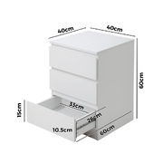 Bedside Table 3 Drawers Side Tables Storage Cabinet Nightstand White