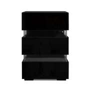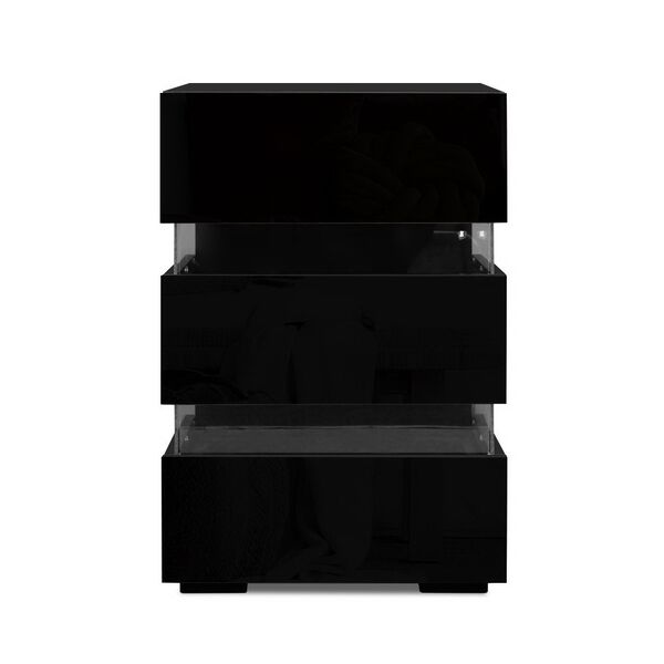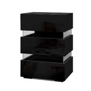 Bedside Table LED 3 Drawers With Shelf Black Finish