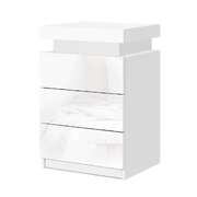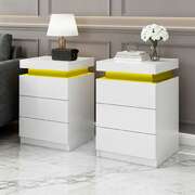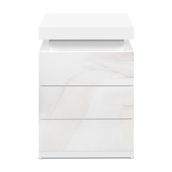 Bedside Table LED 3 Drawers With Shelf White Finish