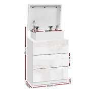 Tired of fumbling in the dark for a light switch in the middle of the night? With our LED Bedside Table, your problems are solved. The bedside table comes with built-in LED lighting that can be customised into 16 different colours to suit your preference. Not only will it create a beautiful ambience, it will also save you from buying extra bedside lamps or nightlights. Three deep drawers sliding on smooth anti-rust runners provide ample storage space. There is also a top storage compartment that opens with a lift-up lid like a treasure trunk, which you can fittingly fill with your own personal treasures. Better still, the handle-free design gives it a modern vibe that stands out from the mundane. Constructed from quality particle board and MDF with melamine finish and high-gloss UV front, the bedside table is durable and easy to maintain. And it will be the perfect addition to your modern bedroom with its contemporary and linear design. Or you can keep one in the living room to wow all your houseguests.