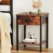 Bedside Table Nightstand 1 Drawer With Shelves Walnut Finish