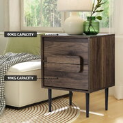 Bedside Table Nightstand 2 Drawers - Walnut