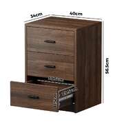 Bedside Table With 3 Drawers Bedroom Nightstand Storage Walnut Wood Cabinet