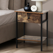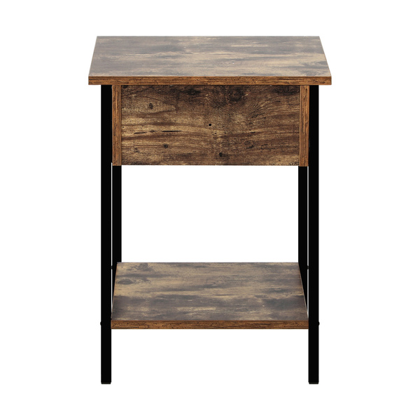 Bedside Table with Drawer and Storage Shelf, Metal Frame Nightstand Cabinet