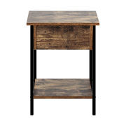 Simple but effective Huon Side Table is here to create a well-balanced living space for your home. Designed with powder coated metal frame and surfaces made with durable board, this table has an open framed design with a drawer as well to offer ample storage for your daily use.