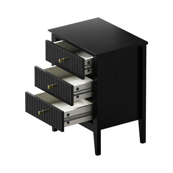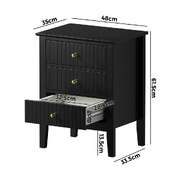 In terms of style, the bedside table has all the vibes of a cottage-inspired piece that stands out from the ordinary. With character and presence to add a rustic touch to your decor. The triple drawers, with stripe textured fronts, are blessed with ample space whilst the auric-hue brass handles make for easy opening and closing besides their aesthetic qualities.