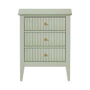 In terms of style, the bedside table has all the vibes of a cottage-inspired piece that stands out from the ordinary. With character and presence to add a rustic touch to your decor. The triple drawers, with stripe textured fronts, are blessed with ample space whilst the auric-hue brass handles make for easy opening and closing besides their aesthetic qualities.