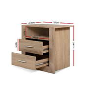 Bedside Table 2 Drawers with Shelf - TARA Oak