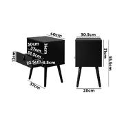 Bedside Tables Side Table Drawer Storage Cabinet w/ Leather Handle Black