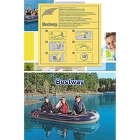 Love to row but do not want the hassle of transporting a heavy boat from home to water? Or creating space to store it? Look no further than our Bestway Inflatable Boat. Completely inflatable, the boat can be up in action within minutes. This awesome inflatable boat has all the necessary valves to make it easy to pump it up (or deflate it), so that you spend more time having fun on the water rather than prepping for it. Not least, heavy-duty handles and an all-round grab rope with built-in guides allow for easy handling. Built to exacting standards, the durable pre-tested vinyl ensures that no water enters the craft and both the floor and seats of the boat are inflatable as well for extra comfort. The boat also features sturdy rowlocks, has a massive weight capacity and includes a heavy-duty repair patch kit. So get ready for a super summer with our inflatable boat and have a great rock and row adventure.