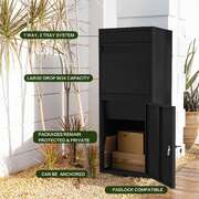 - SECURITY & ANTI-THEFT: The parcel drop box designed for easy operation. Deliveryman just to put packages from top of the box. And the three-way locking mechanism and unique hydraulic drop door maintain your packages safe inside. When you’re back home, take out your packages from drop box by using the key.
