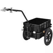 This versatile bike cargo trailer/hand wagon, with a 70 L transport crate, is perfect for local commutes or long-distance tours. This bike cargo trailer has a maximum load capacity of 50 kg. It is designed with a ball coupling system for quick attachment to the bike. Equipped with 2 handles on the drawbar, this cargo trailer can also be used as a hand wagon with a maximum load capacity of 70 kg. The foldable stand allows you to park it securely without having to worry about its tipping over. Thanks to the heavy-duty steel frame construction with impact-resistant PE transport crate, this bike cargo trailer/hand wagon is very sturdy and durable. The included removable nylon cover, made of 100% polyester, is weather resistant and waterproof. The high-visibility coloured reflectors have been added for improved safety. Assembly is really easy.