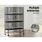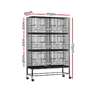 An i.Pet Bird Cage has everything you need to keep, breed and nurture your very own flock. Our expandable six-cage design is suitable for small birds and has four nesting boxes and four food and water bowls per cage, making sharing easy. Made from powder-coated iron with a galvanized finish, the cage is rust and corrosion-resistant and built to last. Twelve perches will keep your birds entertained, happy and healthy. Slide-out dividers let you customize your space for optimum growth, while slide-out trays make cleaning a breeze. The cage is supported by a detachable stand on smooth castor wheels, making moving hassle-free. Best of all, the cage is easy to assemble with no screws needed just follow our handy assembly guide. Show your lovebirds some love and enjoy the flexibility, reliability and accessibility of the i.Pet Bird Cage.