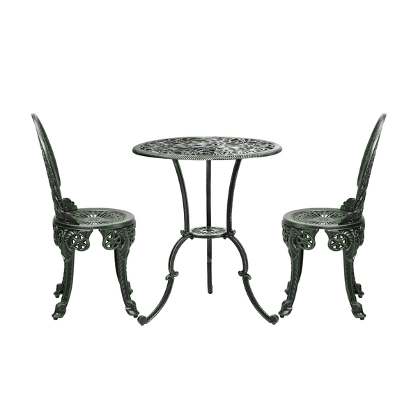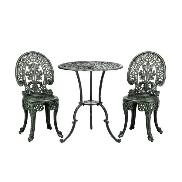 Bistro Setting Outdoor Cast Aluminium Table Chair Garden Furniture 3Piece