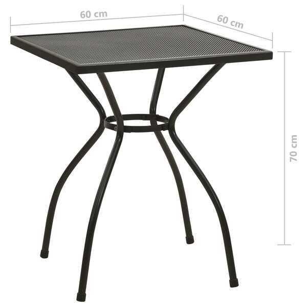 This metal bistro table has a stylish mesh design and will add a touch of contemporary style to your patio, garden or dining room. This modern, industrial-style bistro table is great for enjoying a cuppa with your friend. The table is made of sturdy steel that has been treated with an e-coating and powder coating. The metal table is extra strong, durable, and weather and rust resistant. It is also very easy to clean and maintain thanks to the finish. The mesh design gives the table an elegant look. The curved legs are slim yet stable and add to the aesthetic appeal. The bistro table has a compact design and doesn't take up much space, making it a perfect choice for smaller outdoor or indoor living spaces. Assembly is easy.