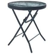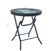 This folding bistro table has an elegant design and will make a great addition to your garden, terrace or patio for al fresco dining or just relaxing outside. It is also ideal for indoor use. Constructed from powder-coated steel, the balcony table is sturdy and durable. The glass tabletop is weather-resistant and easy to clean, making it far more suitable as a garden furniture. The water wave pattern on the tabletop brings modern and elegant charm. The tea table is also lightweight and easy to move around. The table can be folded to save space when not in use.