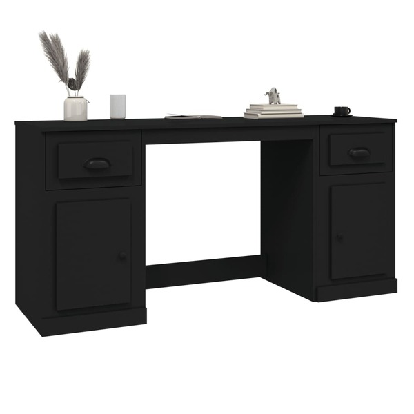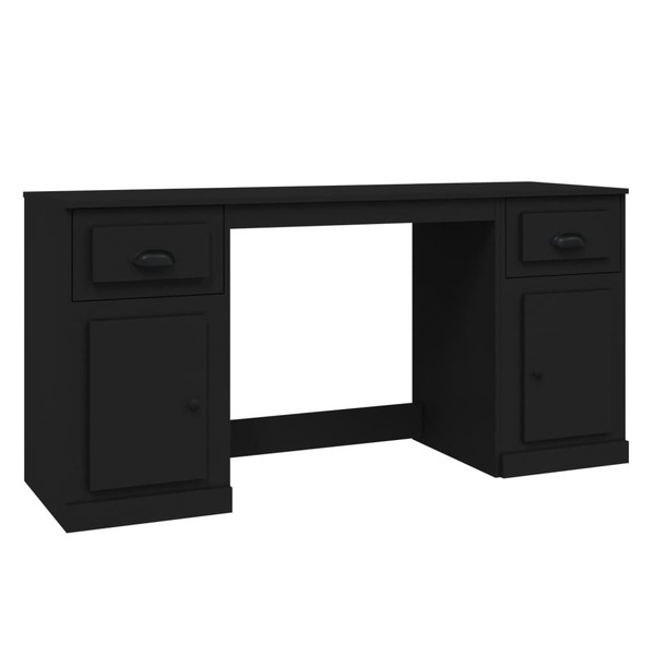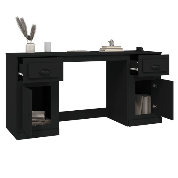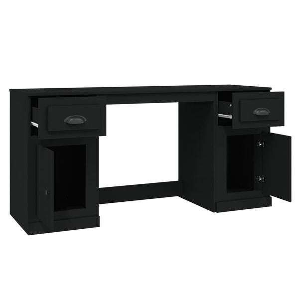 Black Engineered Wood Desk with Cabinet