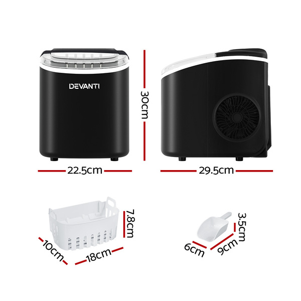Portable Ice Maker Machine Ice Cube Tray 12Kg Bar Countertop Black