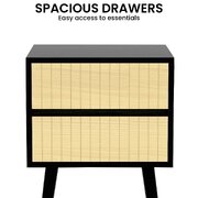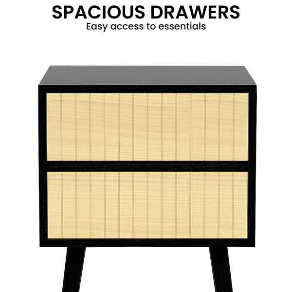 Elevate your space with the captivating fusion of modern Scandinavian style and functional design found in this stunning side table. Spacious two-tier drawers provide ample storage, complemented by an artistic fluted design on the drawer covers. Supported by robust pinewood legs, this table establishes a sturdy foundation, bringing a breath of fresh, contemporary air to your home. Experience the perfect blend of style and functionality with the Ivan Bedside Table by Sarantino.