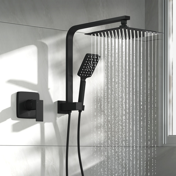10" Rain Shower Head Set, Mixer Square 3-Mode Handheld Shower Black