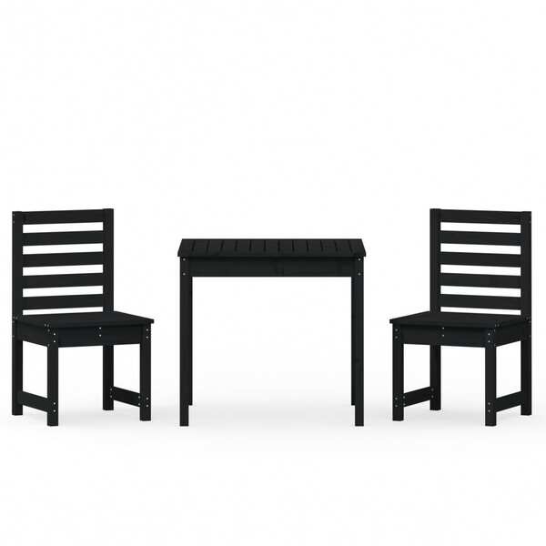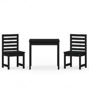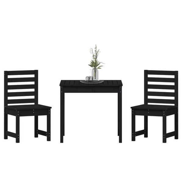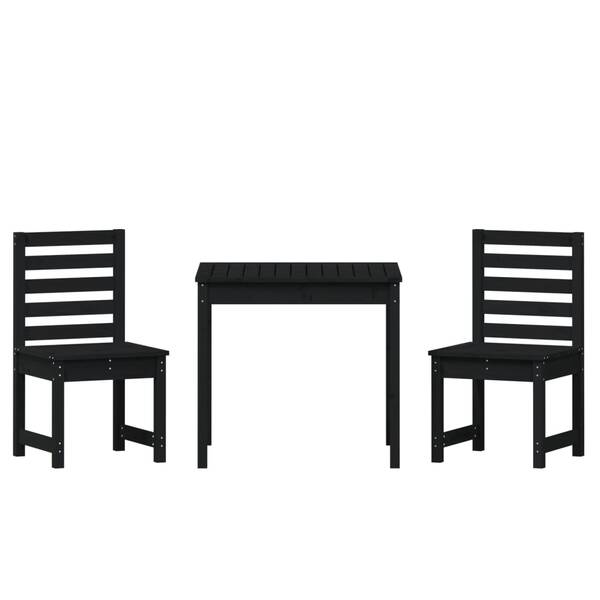 3-Piece Black Solid Pine Wood Garden Bistro Set