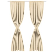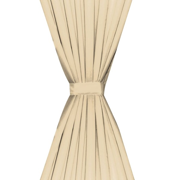 These elegant double-layered curtains will look great in your living room, bedroom, office space etc. They will give you privacy and block out all incoming light. The curtains have a simple yet timeless design. They can be put up easily, and you can keep them open with the included tiebacks. The backing layer of the curtains is made of coated polyester fabric, which not only completely blocks incoming light, but also keeps your room warm in the winter and cool in the summer. The 2 layers are held together perfectly with hook and loop fasteners. Delivery includes 2 curtains and 2 tiebacks. Please note the curtain rod is not included.