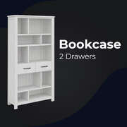 Bookshelf Bookcase 5 Tier 2 Drawers Solid Mt Ash Timber Wood - White