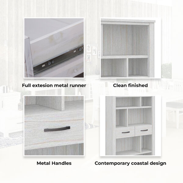 Books are nothing short of a treasure for book lovers. Book connoisseurs have a natural desire to keep their collection safe. This bookcase, designed in the coastal style, effortlessly serves the purpose. It has 2 drawers and 10 open shelves of varied sizes. Pretty in its appearance, this lovely furniture piece features a strong structure of mountain ash wood, obtained in a sustainable manner. The wood is known for its attractive looks, great strength, shock-resistance, durability, and ease of maintenance. The sizable drawers have full extension metal runners. Smooth-on-touch metal handles with an antiqued finish adorn all drawers. The bookcase goes well with a range of decor types because it is in Brushed White Wash finish. The fully assembled bookcase comes with a one-year warranty.