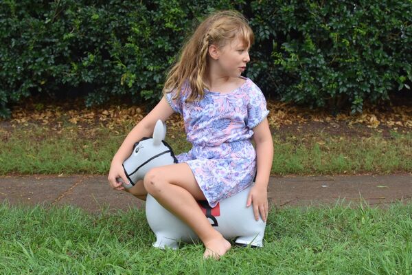 Introducing Granite the Horse Bouncy Rider by, a charming inflatable ride-on companion that adds a dash of equestrian elegance to your child's playtime. With its graceful grey color and intricate printed saddle and harness, Granite embodies the spirit of a majestic steed, ready to gallop into countless imaginative adventures. Crafted for bouncing, jumping, and fostering balance and coordination skills, Granite the Horse promises hours of delightful play and developmental benefits. Whether trotting through imaginary fields indoors or cantering through outdoor landscapes, this noble horse encourages active play and imaginative storytelling. Each Granite the Horse Bouncy Rider comes complete with a convenient hand pump for easy inflation, ensuring quick setup and instant enjoyment. Additionally, it meets stringent safety standards, complying with EN71 & CPSIA regulations and ensuring it's free from harmful substances such as Phthalates and PAHs. With a maximum weight capacity of 50kg, Granite accommodates children of various ages and sizes, making it an ideal companion for solo adventures or shared escapades with friends. Get ready to embark on enchanting journeys with Granite the Horse Bouncy Rider by!
