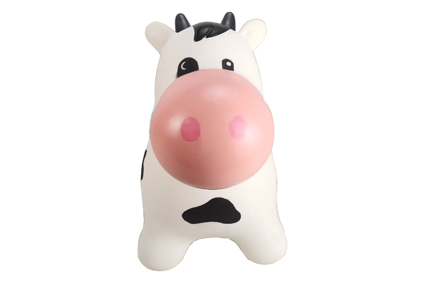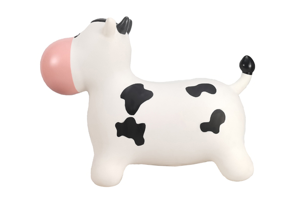 Introducing the delightful Bouncy Rider Moo Moo The Cow by, an enchanting inflatable ride-on designed to add a touch of whimsy and learning to your child's playtime. With its charming white body adorned with distinct black spots reminiscent of a classic milk cow, this bouncy companion promises endless fun and developmental benefits. Crafted for bouncing, jumping, and fostering balance and coordination skills, Bouncy Rider Moo Moo is an ideal playmate for active children. Whether they're hopping around the backyard or embarking on indoor adventures, this playful cow is sure to keep them entertained for hours on end. Each Bouncy Rider Moo Moo comes complete with a convenient hand pump, ensuring effortless inflation for immediate play. Additionally, it meets stringent safety standards, complying with EN71 & CPSIA regulations and guaranteeing it's free from harmful substances such as Phthalates and PAHs. With a maximum weight capacity of 50kg, this versatile toy accommodates children of various ages and sizes, making it perfect for solo play or sharing adventures with friends. Get ready for moo-velous fun and laughter with Bouncy Rider Moo Moo The Cow!
