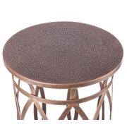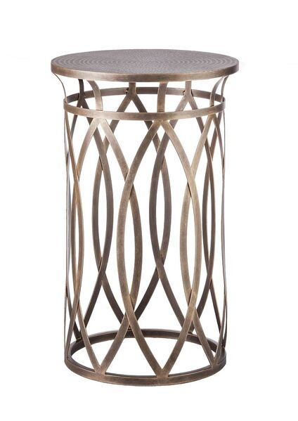 This Round Iron Side Table with Cross Legs in Brass Finish features an elegant design that will create an eye-catching impact wherever placed. Its stylish frame has an intricate design that gives the piece a unique look. With a detailed design carved on top and a beautiful Brass Finish to the overall piece, this Side Table is magnificent in its aura. It is perfect for placing your decorations or holding your telephone, while making a style statement in your Room. Constructed from 100% Wrought Iron, this piece promises a lasting quality.