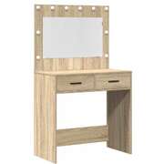Brown Dressing Table with LED Lights Drawer Shelf Engineered Wood Makeup Vanity Unit