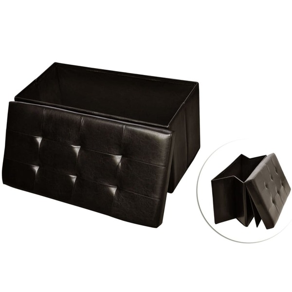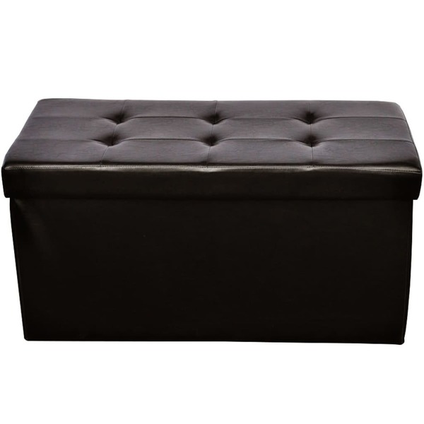 Brown Faux Leather Folding Storage Seat Bench Stool Ottomans