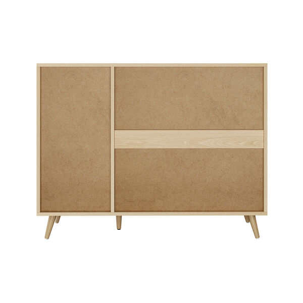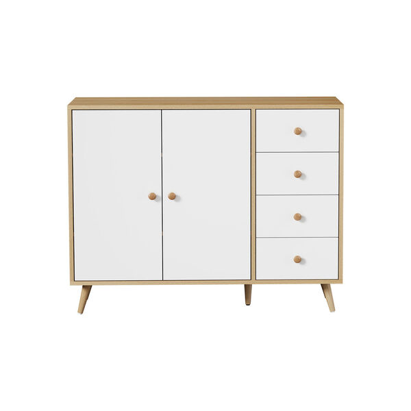 Constructed with 15mm particle board, a very stable spayed legs base and quality components, the sideboard maintains a good sense of structure and durability. The attention to detail is meticulous, evidenced by the round wooden handles, smooth edges all round and fine workmanship from top to bottom. And maintaining the sideboard in its pristine condition is just a simple wipe away. Assembly is a breeze too with the easy-to-follow instructions.