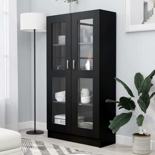 Vitrine Cabinet Black Engineered Wood