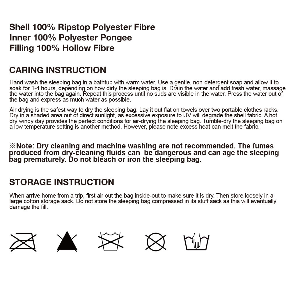 Shell: 210T Nylon Ripstop