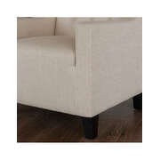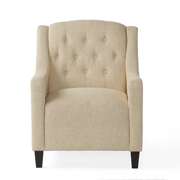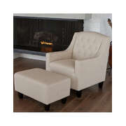 With its wide stance and soft padding, the Canberra Tufted Fabric Chair Footrest Set combines contemporary and traditional elements to create one stunning set. The chair features Beigie color linen upholstery with tufted back and dark espresso stained legs. Empierre is sure to bring a class to your room.
