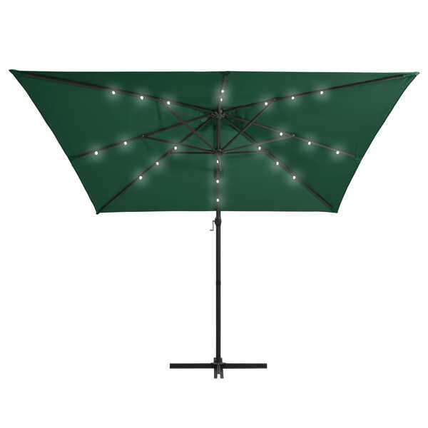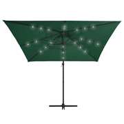 Cantilever Umbrella with LED lights and Steel Pole 250x250 cm Green