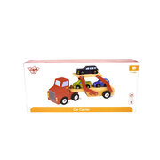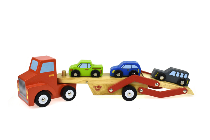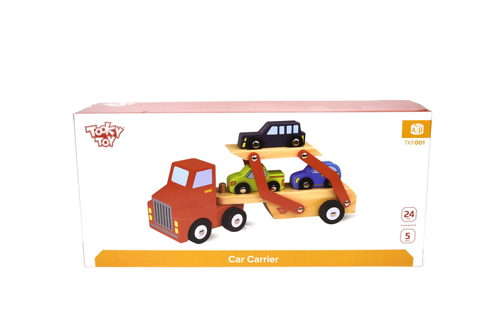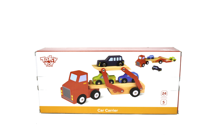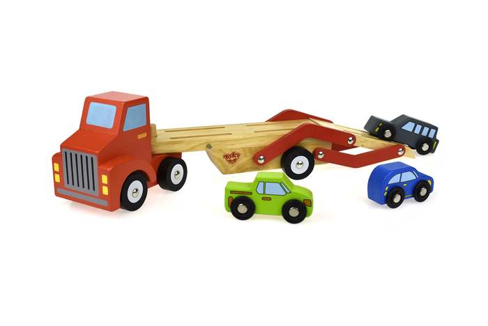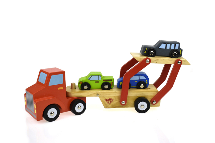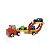 A car transporter is the epitome of fun and play when it comes to wooden transport vehicles. Our car transporter has a fresh design which moves smoothly across all surfaces. The set comes with one wooden car transporter and smaller wooden vehicles. These wooden vehicles are well finish and uses non-toxic paints.