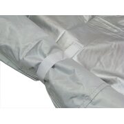 These covers are designed to be easily fitted with elastic hems around the front and rear as well as adjustable straps which pass under the body from side to side. The straps are adjustable (to around 2.8m) and have quick-release / fitting clips to make securing the cover quick and easy.