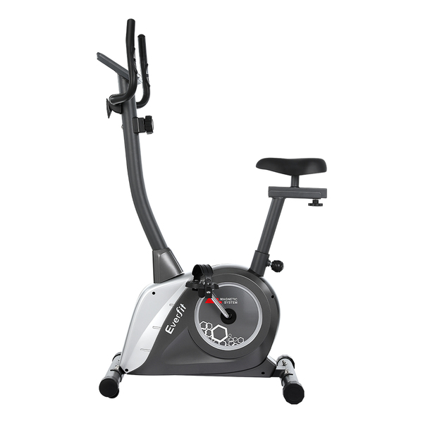 Never miss a workout with an Everfit Exercise Bike. Our gym-quality equipment fits perfectly in your home, helping you achieve your fitness goals one day at a time. This dual-action exercise bike features an magnetic resistance system with a 4kg heavy-duty steel flywheel and 8 manual resistance levels for a full-body workout. Adjust the thick padded seat horizontally, vertically, backwards and forwards for the ideal fit. The digital display and wireless pulse receiver track multiple fitness parameters where you can see them. Non-slip pedals with protective straps keep your feet firmly in place, while built-in wheels make the bike easy to move. Best of all, an in-built phone/tablet holder allows you to watch your favourite movies, shows or workout mixes as you exercise. So what are you waiting for? Start your very own home gym today with an Everfit Exercise Bike.