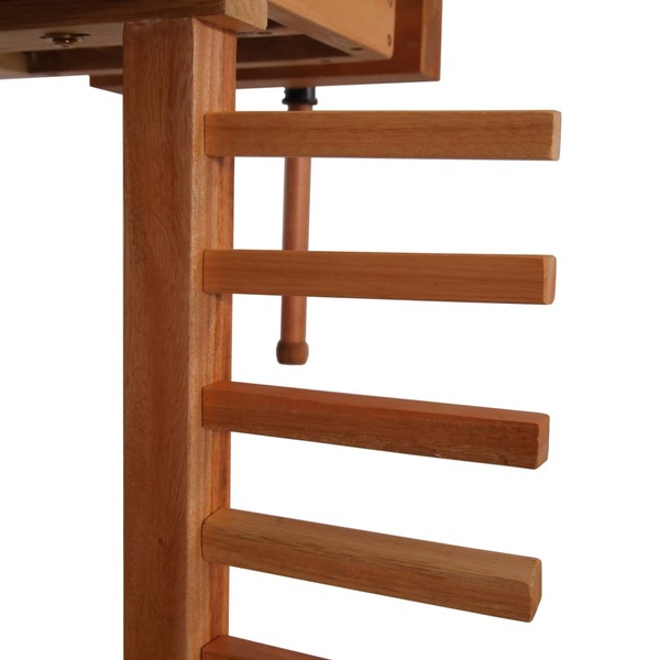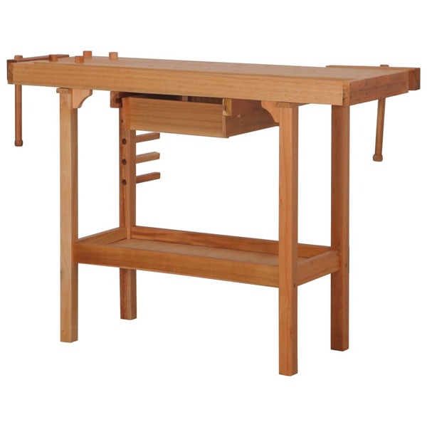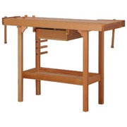 This heavy-duty wooden workbench will be perfect for both professional and personal use. The workbench is equipped with 1 front vices, 1 end vice, as well as 6 wooden pegs for fixing workpieces firmly and securely. Featuring a storage drawer, a tool well and a tool tray, the worktable provides ample storage space for keeping your tools well organised and within reach. Thanks to the large and stable work surface, you can efficiently work on even larger workpieces. Made of quality solid eucalyptus wood and plywood, this workbench is exceedingly stable and durable. This workbench needs to be assembled.
